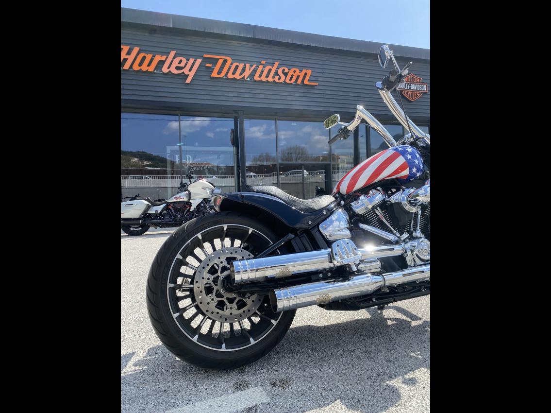 HARLEY-DAVIDSON TOULON VOUS PROPOSE CE MAGNIFIQUE SOFTAIL BREALOUT CAPITAINE AMERICA DU 16/09/2023 AVEC UNIQUEMENT 2 065 KMS, TRES BELLE CUSTOMISATION AVEC