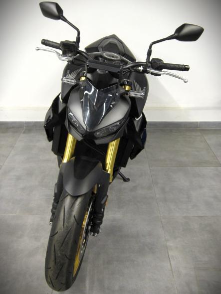 3 modes de conduite STANDARD / SPORT / RAIN (+2 mode ‘USER’) gérant de concert le contrôle de traction HSTC, le frein moteur et l’arrivée des watts, Norme (euro5+), Etriers Brembo Stylema, un amortisseur arrière Ohlins TTX36 ainsi qu’un shifter up and down, Ecran TFT 5 pouces,