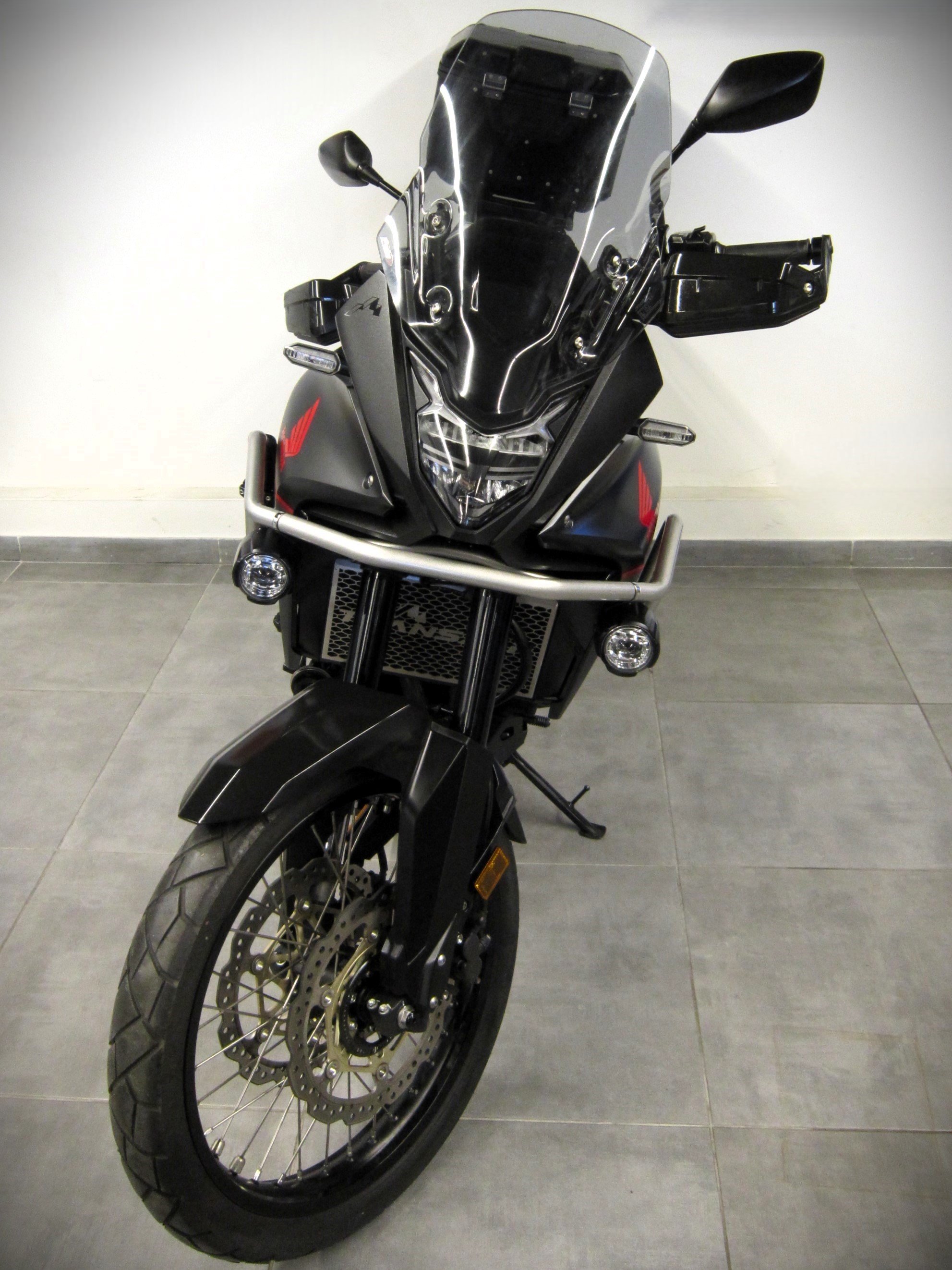 Béquille centrale, Bulle fumée et haute, Crashbar, Dosseret top case, Feux additionnels, Grille de radiateur, Pare mains, Poignées chauffantes, Prise 12 V, Quick shifter, Sabot moteur, Selle confort, Support Top case, Top case, Warning.