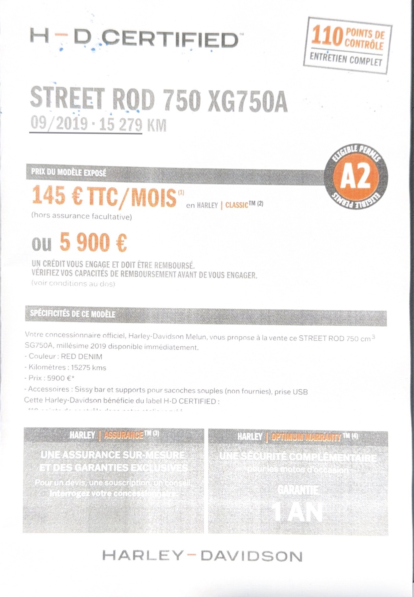 Cette Harley-Davidson bénéficie du label H-D CERTIFIED :