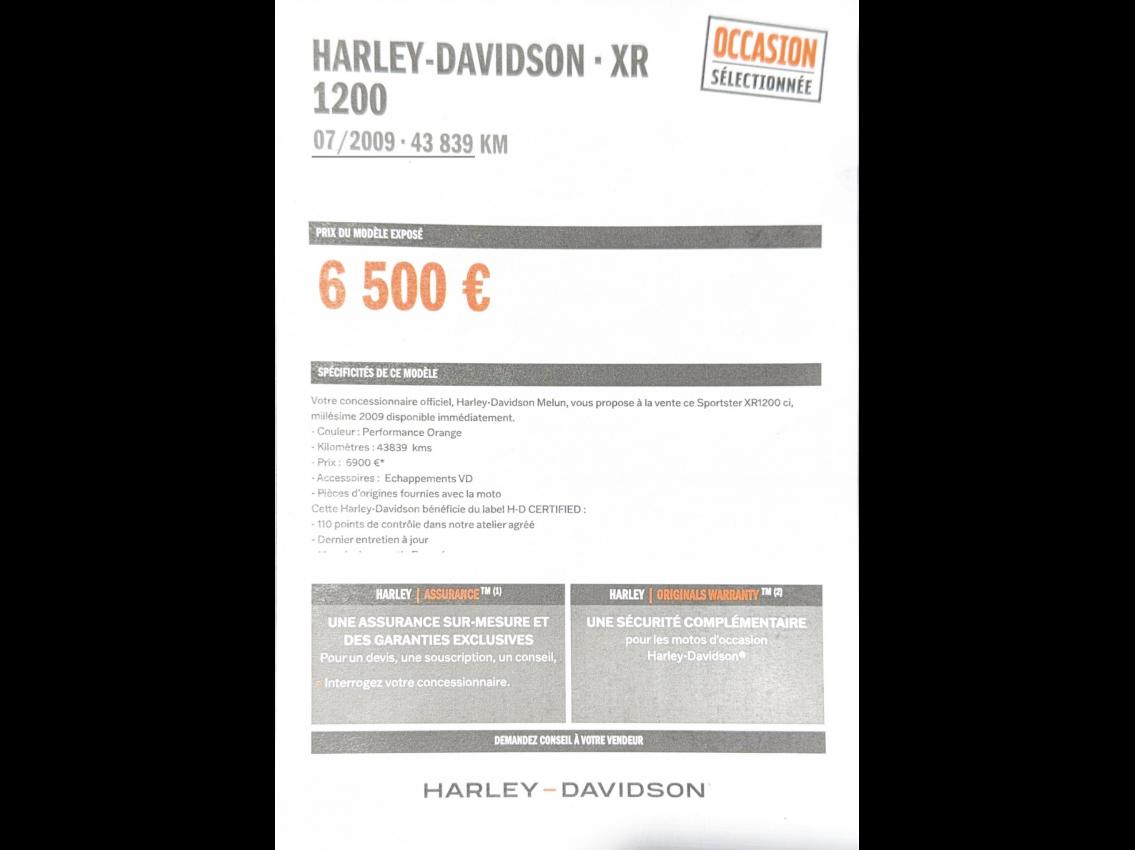 Votre concessionnaire officiel, Harley-Davidson Melun, vous propose à la vente ce Sportster XR1200, millésime 2009 disponible immédiatement.