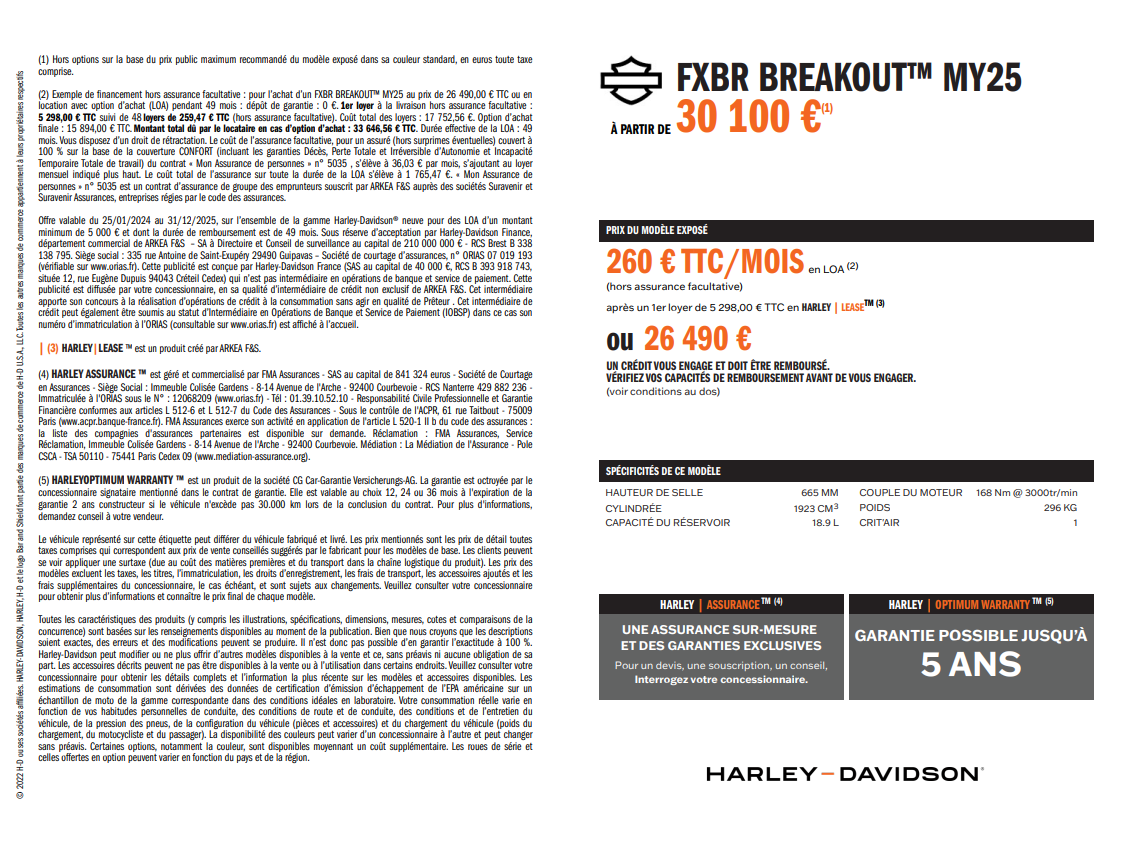 Venez découvrir ce Softail Breakout 117 avec 1500kms (kilométrage évolutif) .