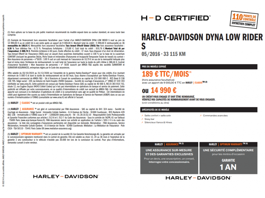 Venez découvrir ce Low Rider S du 17/05/2016 avec 33115kms .