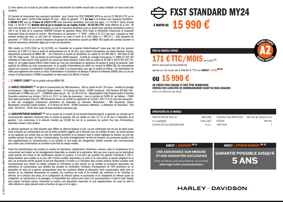Contactez votre Concessionnaire Agréé Harley-Davidson pour obtenir de plus amples informations. »