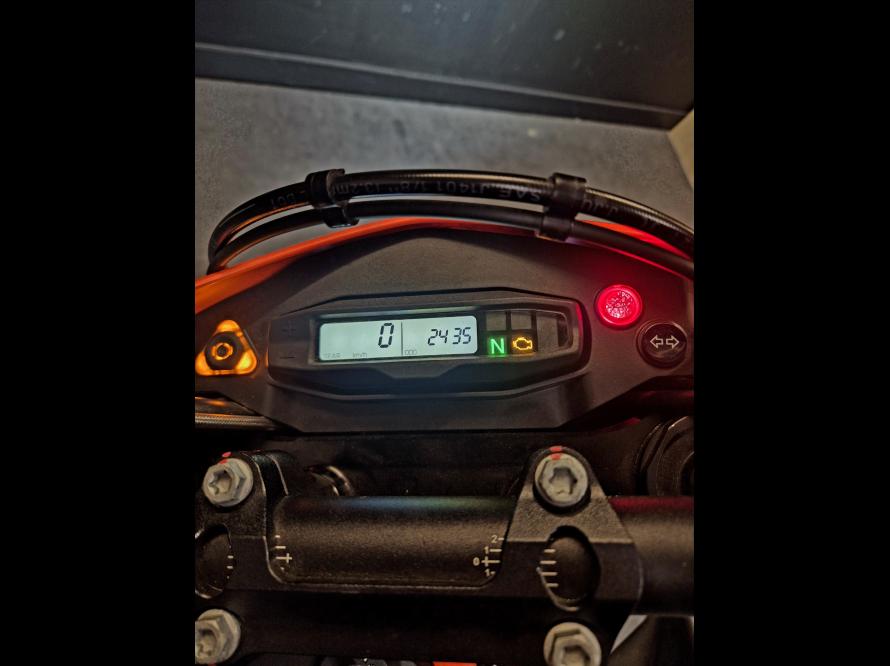 Moto équipé d’un phare a LED et d’un support de plaque d’immatriculation