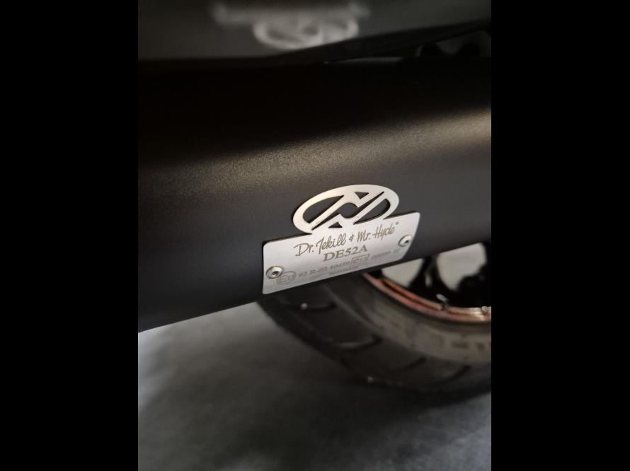 Moto équipée de silencieux DR. Jekill (sonorité variable)