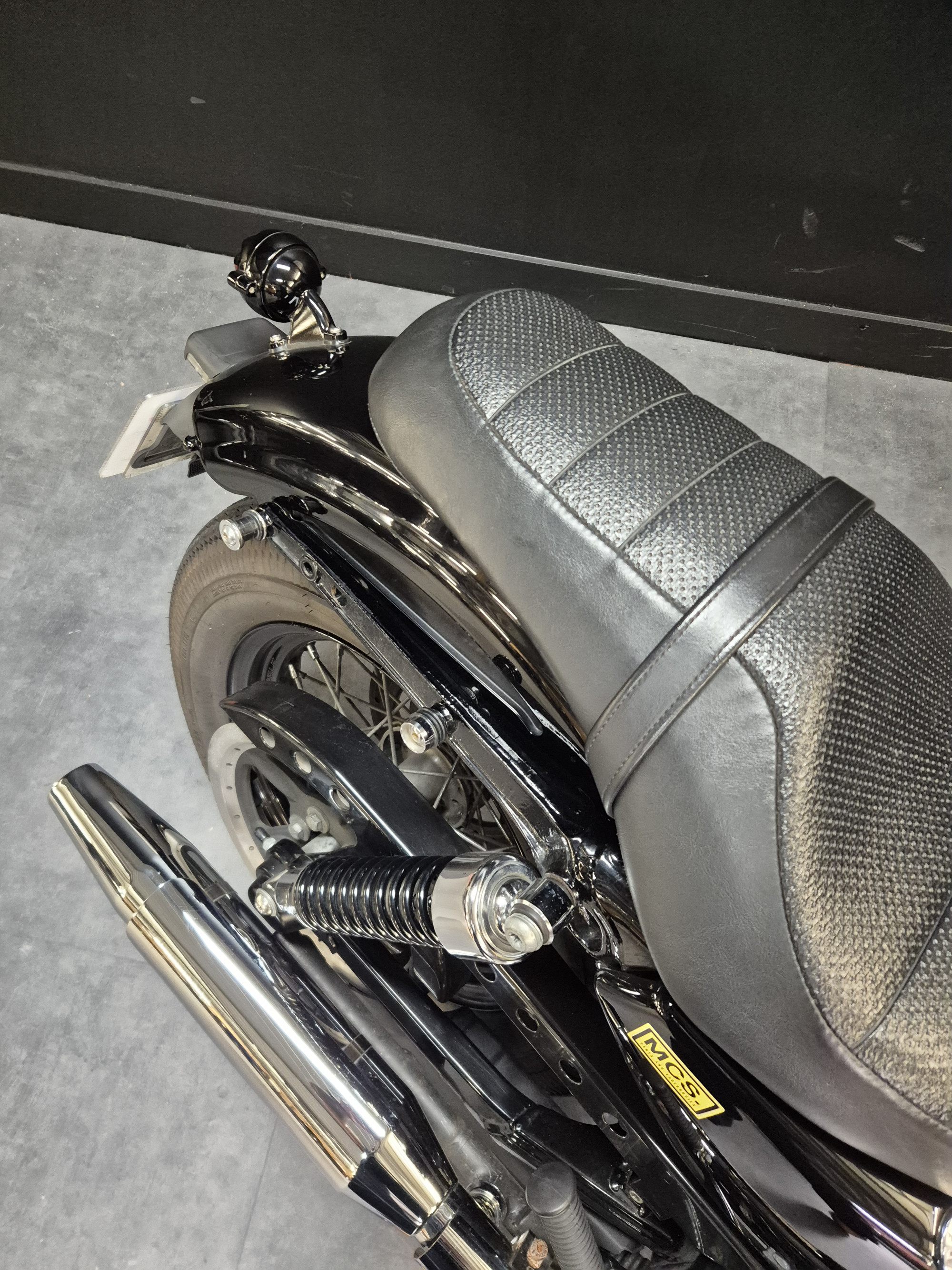 Moto vendue avec son sissy bar et sa selle solo d’origine