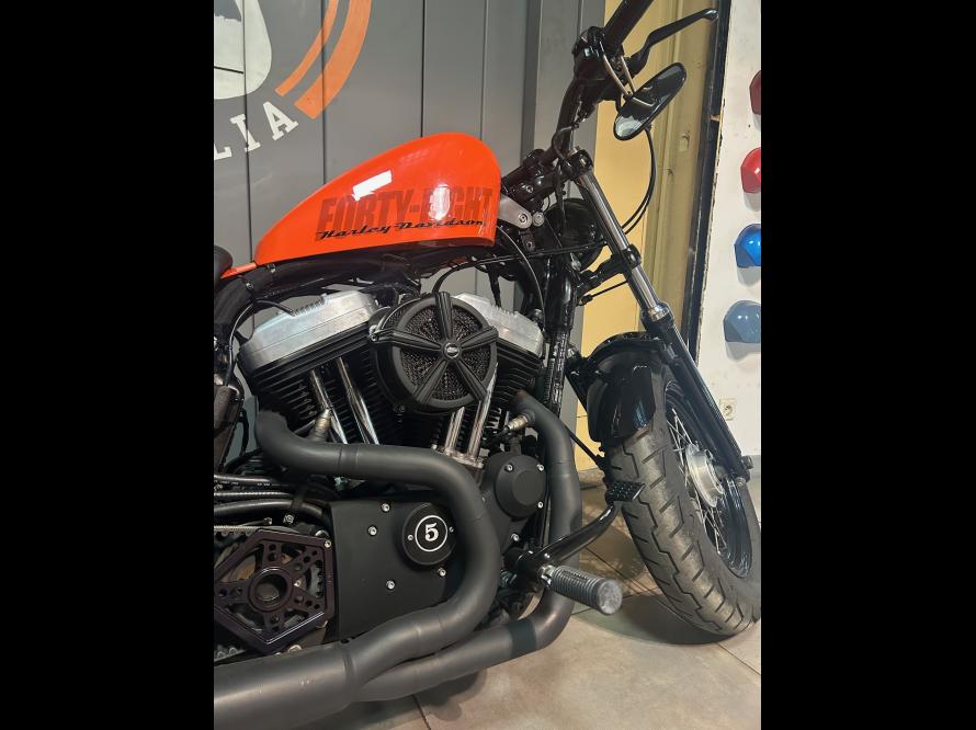 Harley-Davidson Massilia vous propose ce superbe Sportster 1200 Forty Eight (XL48) de couleur orange. Il est de 2011 avec 26787 kms. Dans un superbe état, la révision vient d'être faite, aucun frais à prévoir.