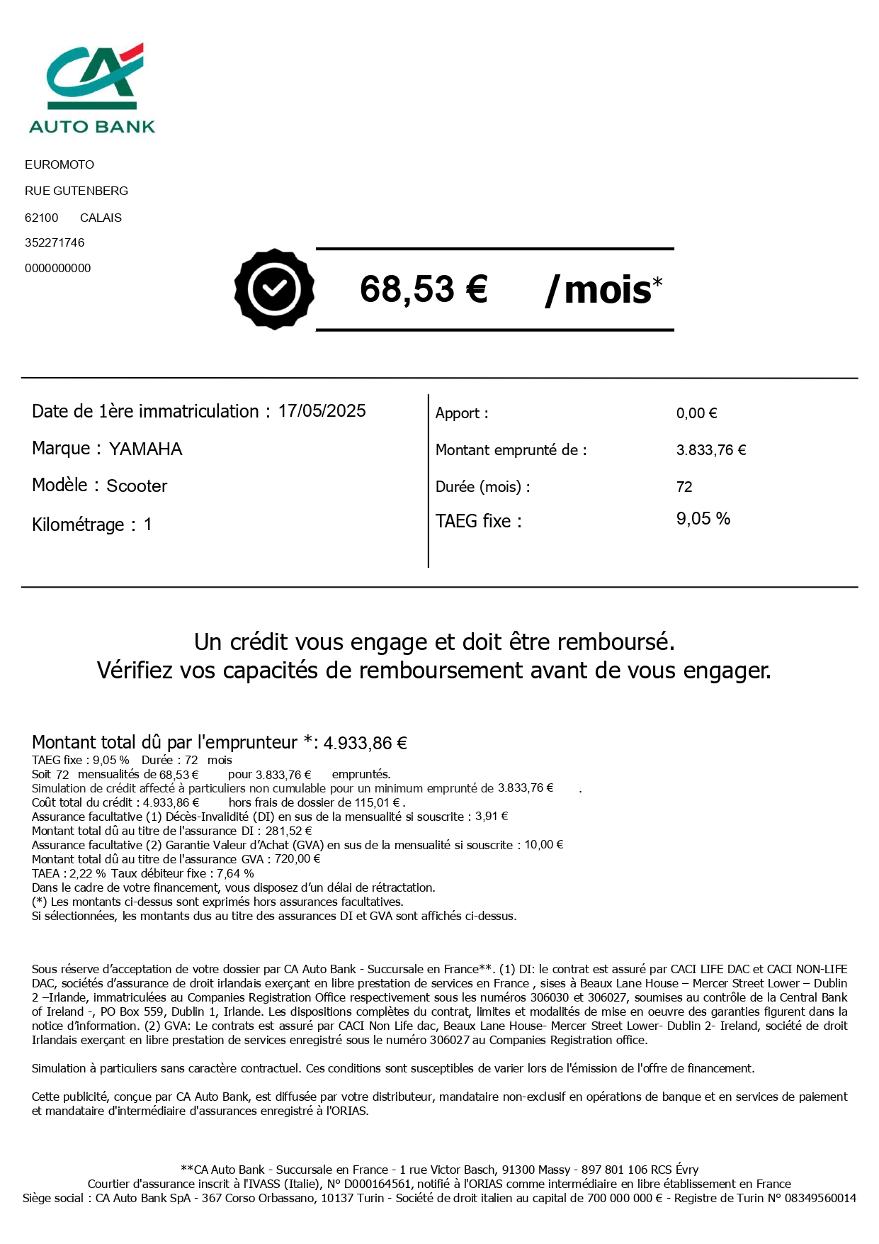💵 - Solution de financement de 12 à 72 mois, avec ou sans apport.