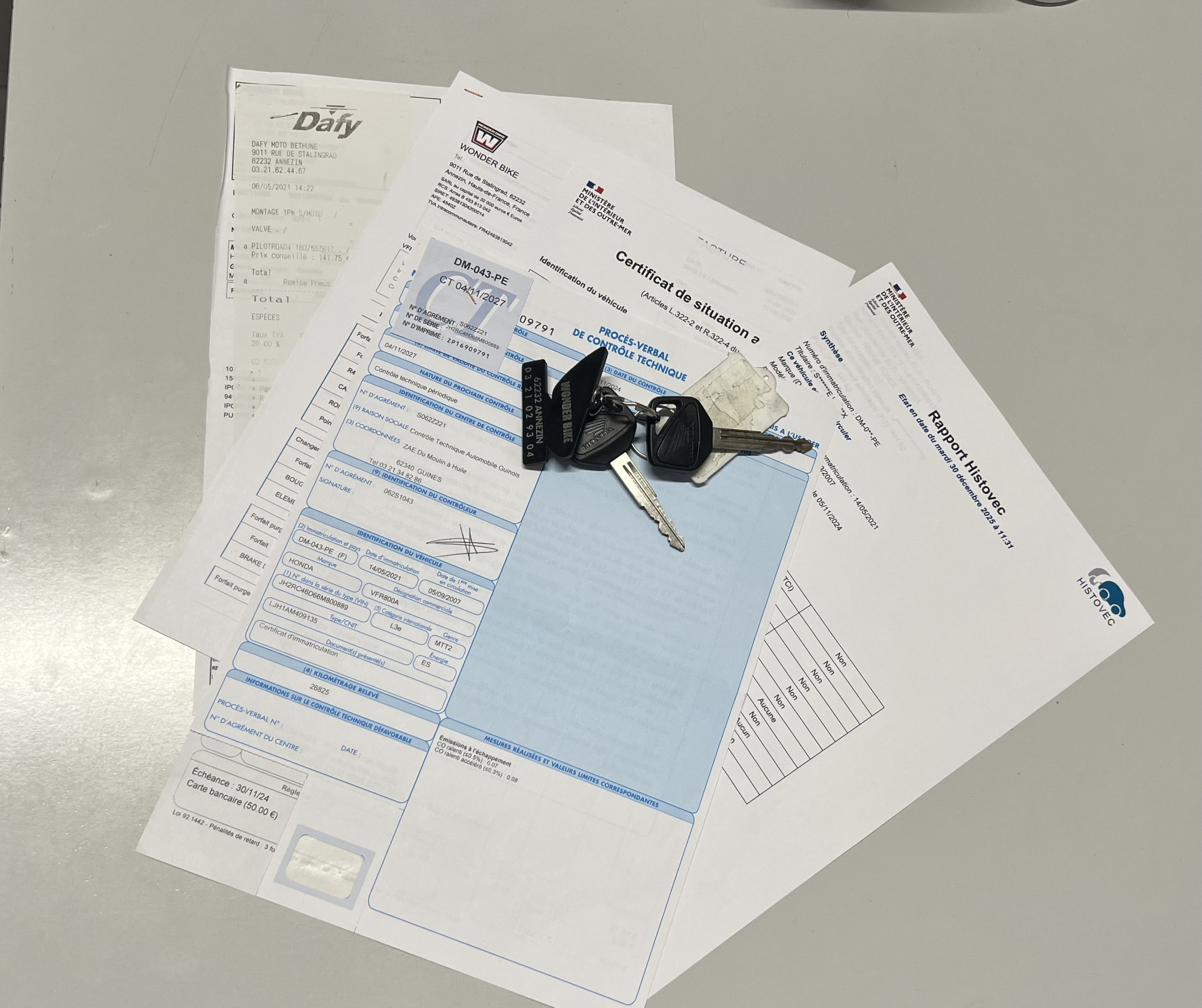 Équipements présent sur la moto :