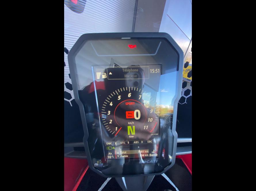ÉQUIPEMENT DE SÉRIE: Modes de conduite, Modes de puissance, Anti-wheeling Ducati (DWC), Paramétrage du frein moteur (EBC), Shifter montée/descente (DQS), Régulateur de vitesse, Système d'éclairage Full LED, DRL**, Ducati Brake Light (DBL), Prise USB, Prise 12V, Clignotants à extinction automatique, Amortisseur de direction, Batterie Lithium-ion