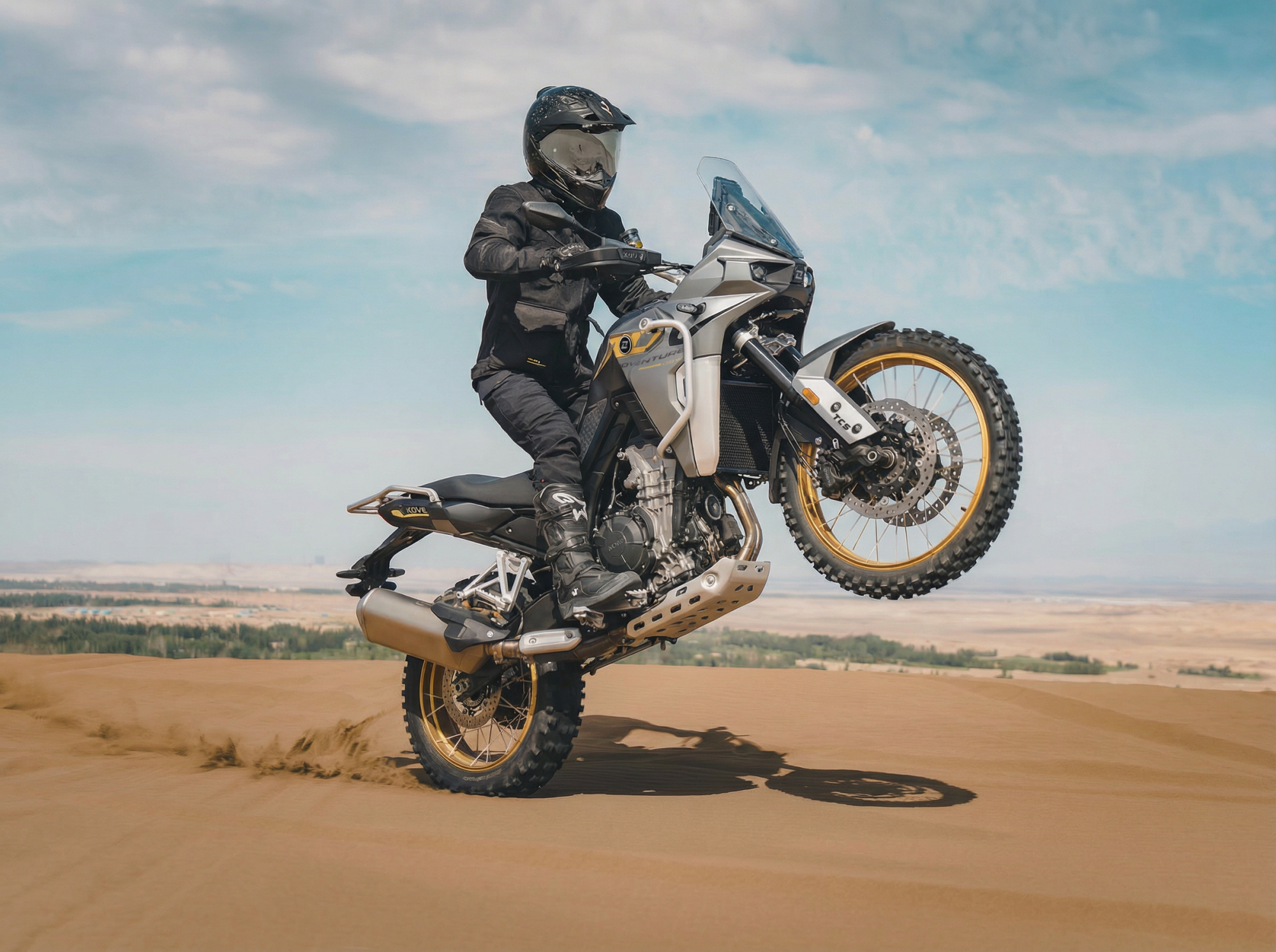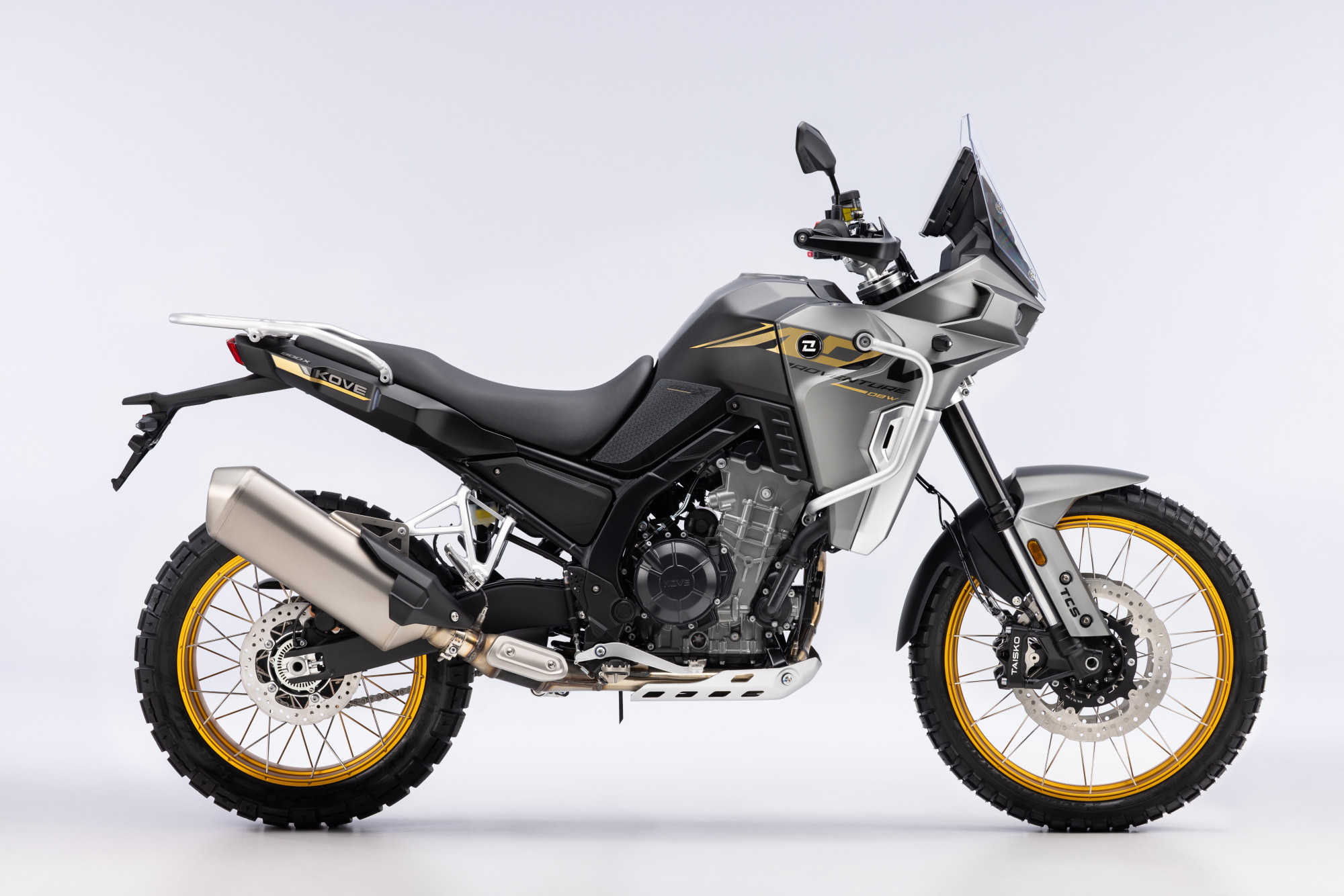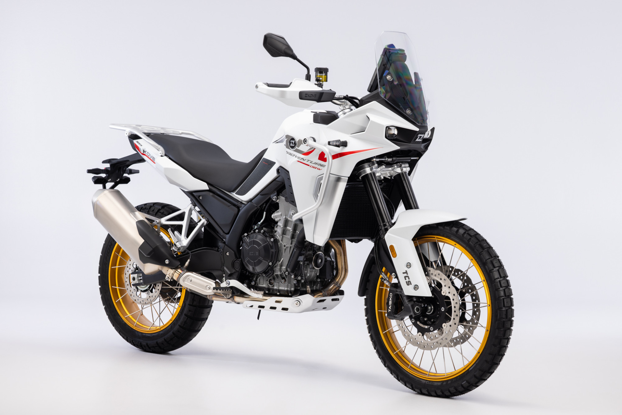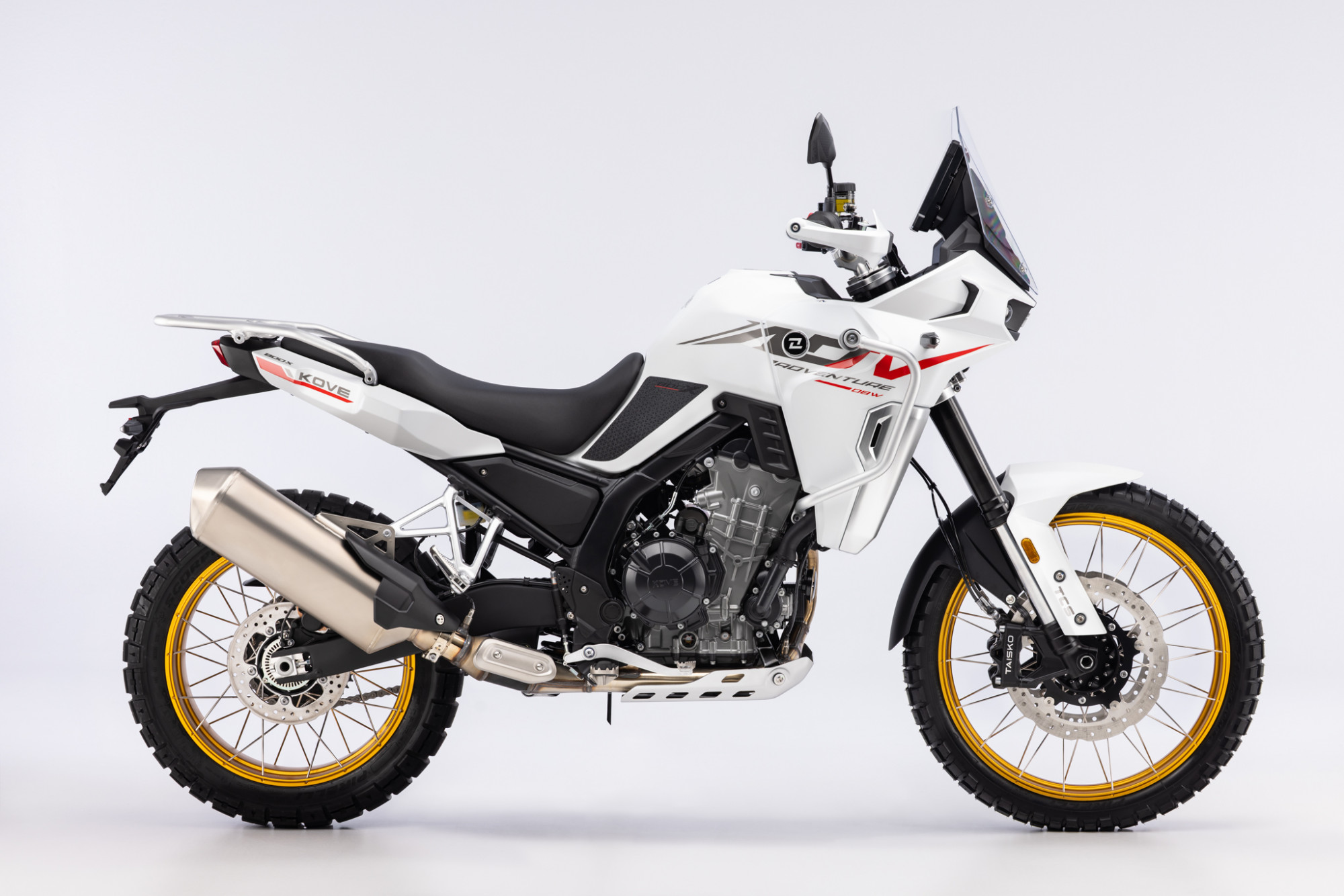 La Kove 800 X Pro est dotée de freins à disques flottants avec étriers radiaux Taisko et de pneus Pirelli Scorpion Rally STR, ainsi que d’un contrôle de traction et d’un quick shifter de série. Son écran TFT numérique affiche diverses informations, notamment la vitesse, le régime moteur, la température du moteur, le niveau de carburant et le mode de conduite (ECO, SPORT, RAIN).